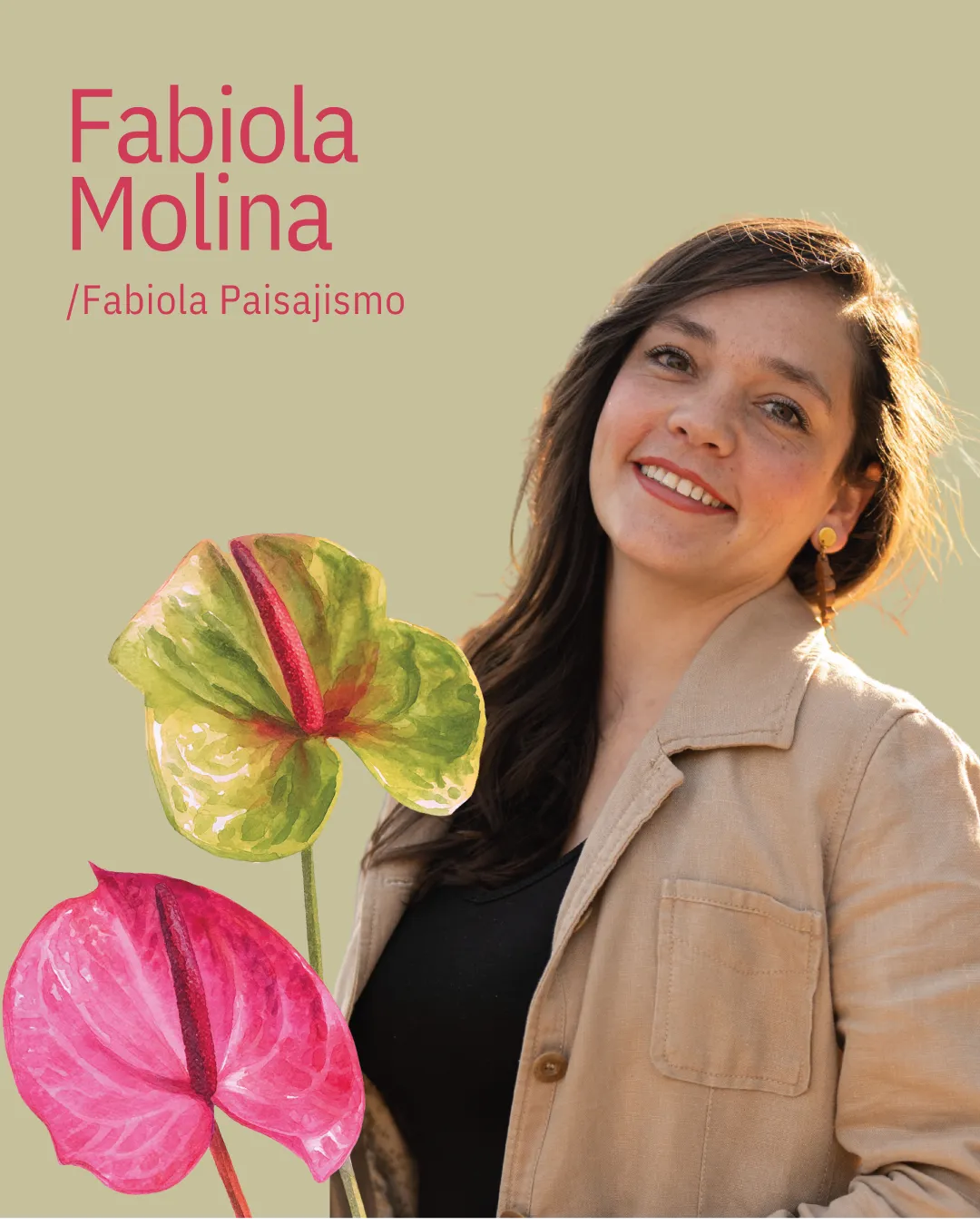Arquitecta por la UNAM y paisajista de vocación, Fabiola Molina cuenta con más de 16 años de experiencia en paisajismo, agroforestería y diseño floral. Su trayectoria ha evolucionado de la creación de jardines estéticos y funcionales hacia una práctica regenerativa centrada en suelos, agua, historia y ecosistemas.