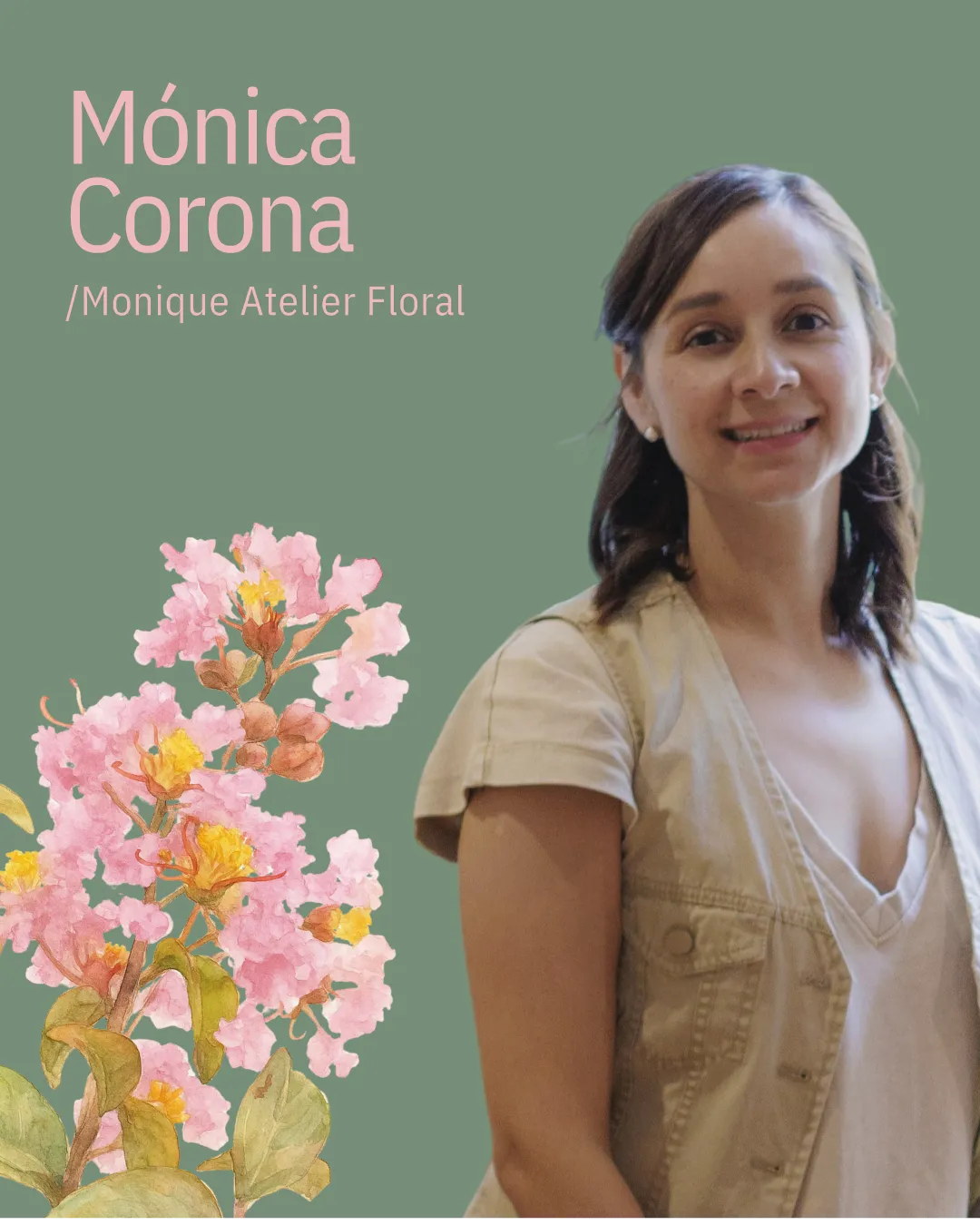 Diseñadora floral multidisciplinaria y gestora de proyectos creativos, Mónica Corona Montes es fundadora de Monique Atelier Floral y creadora de FLOR VIVA. Su práctica integra más de una década de experiencia en planeación estratégica y alianzas en contextos corporativos, gubernamentales e internacionales.